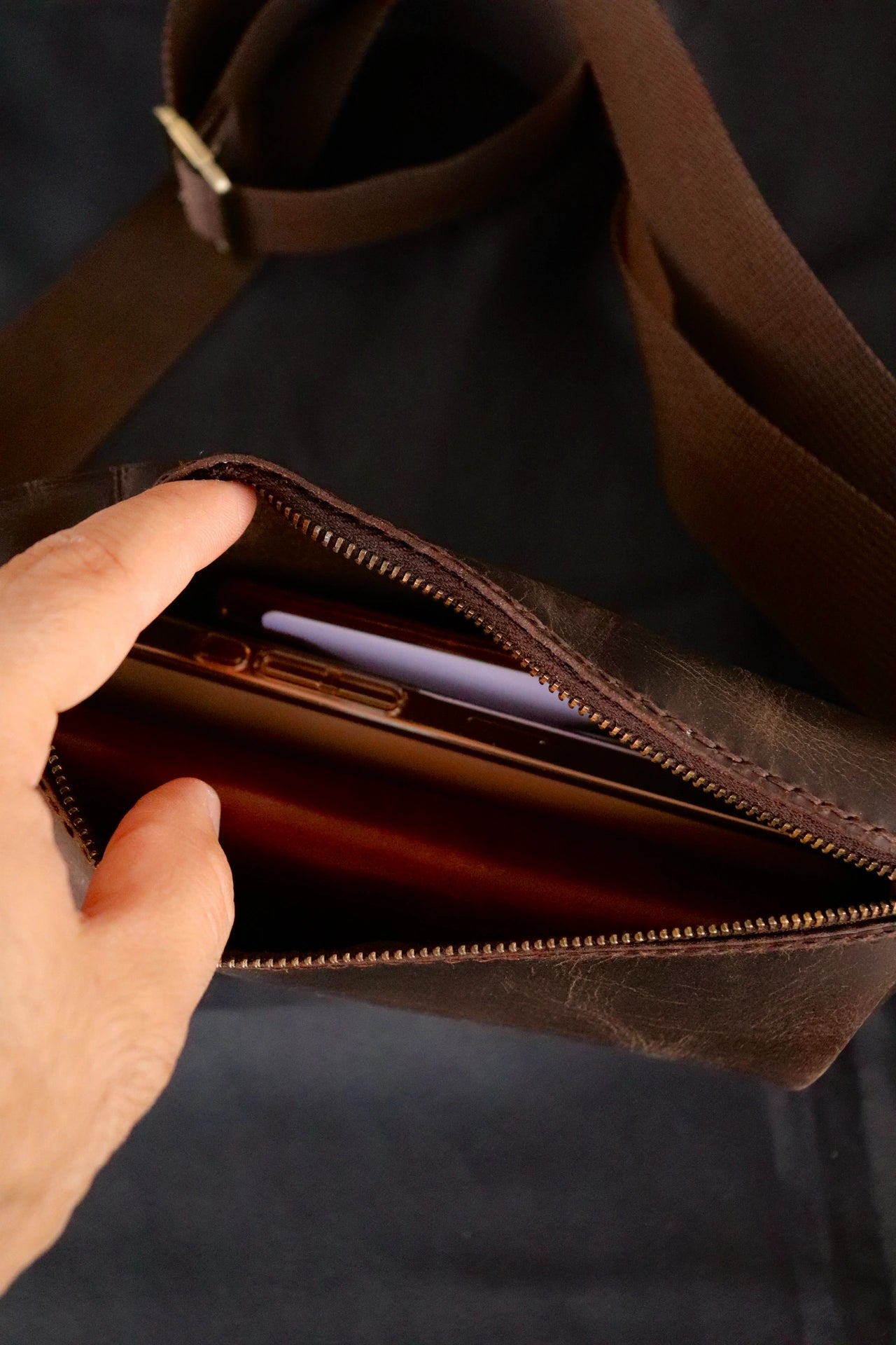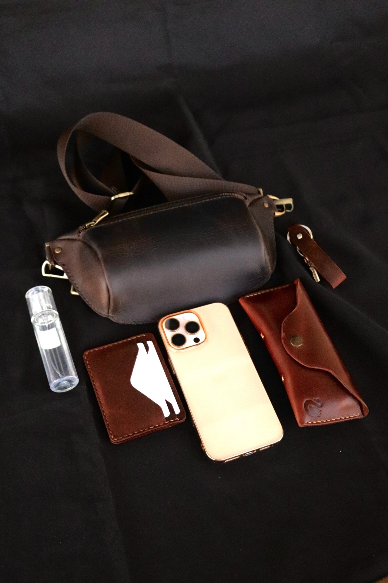 Vintage dokusu ve sade hatlarıyla zamansız bir görünüm sunan Artemon, kartlık, telefon, anahtar ve küçük eşyalarınızı güvenle taşımanızı sağlar. Pirinç metal aksesuarları, kalın dokulu ayarlanabilir askısı ve pürüzsüz fermuar yapısıyla hem estetik hem de işlevsel bir deneyim sunar.