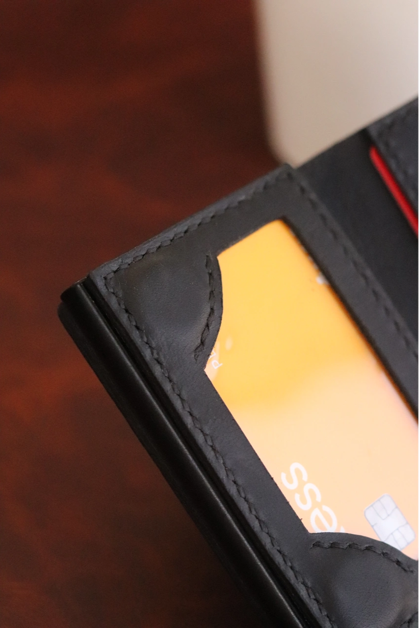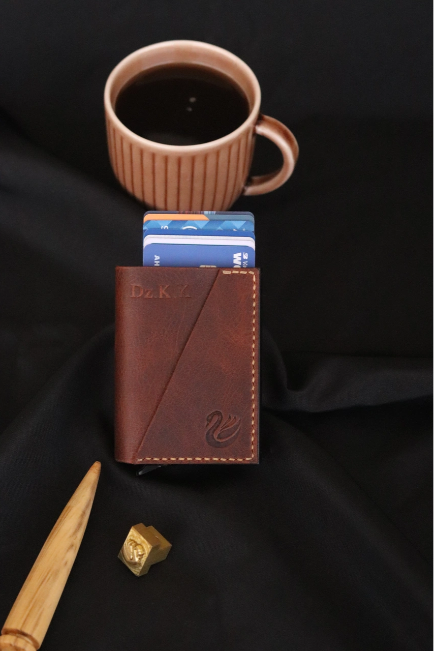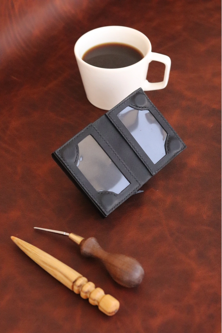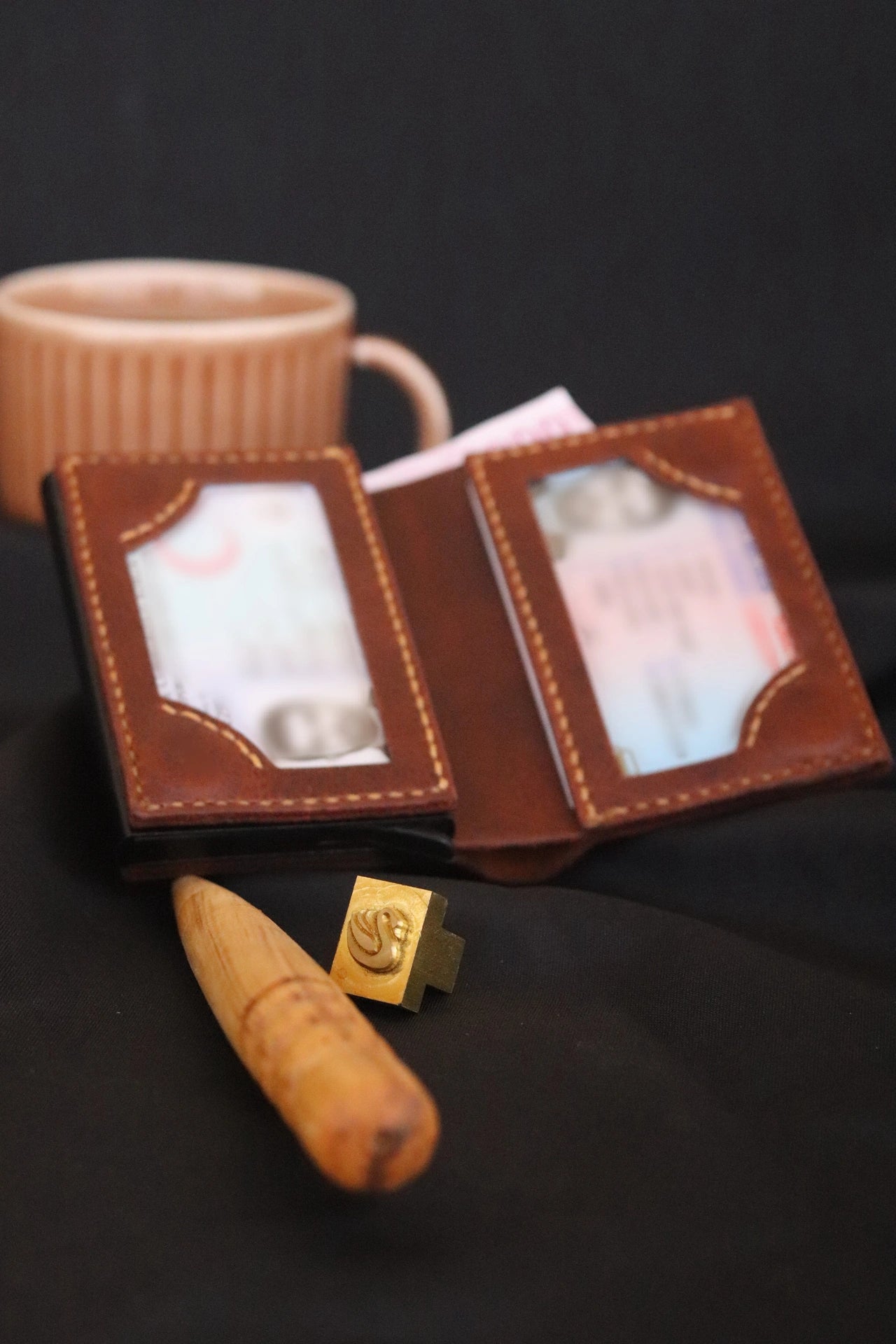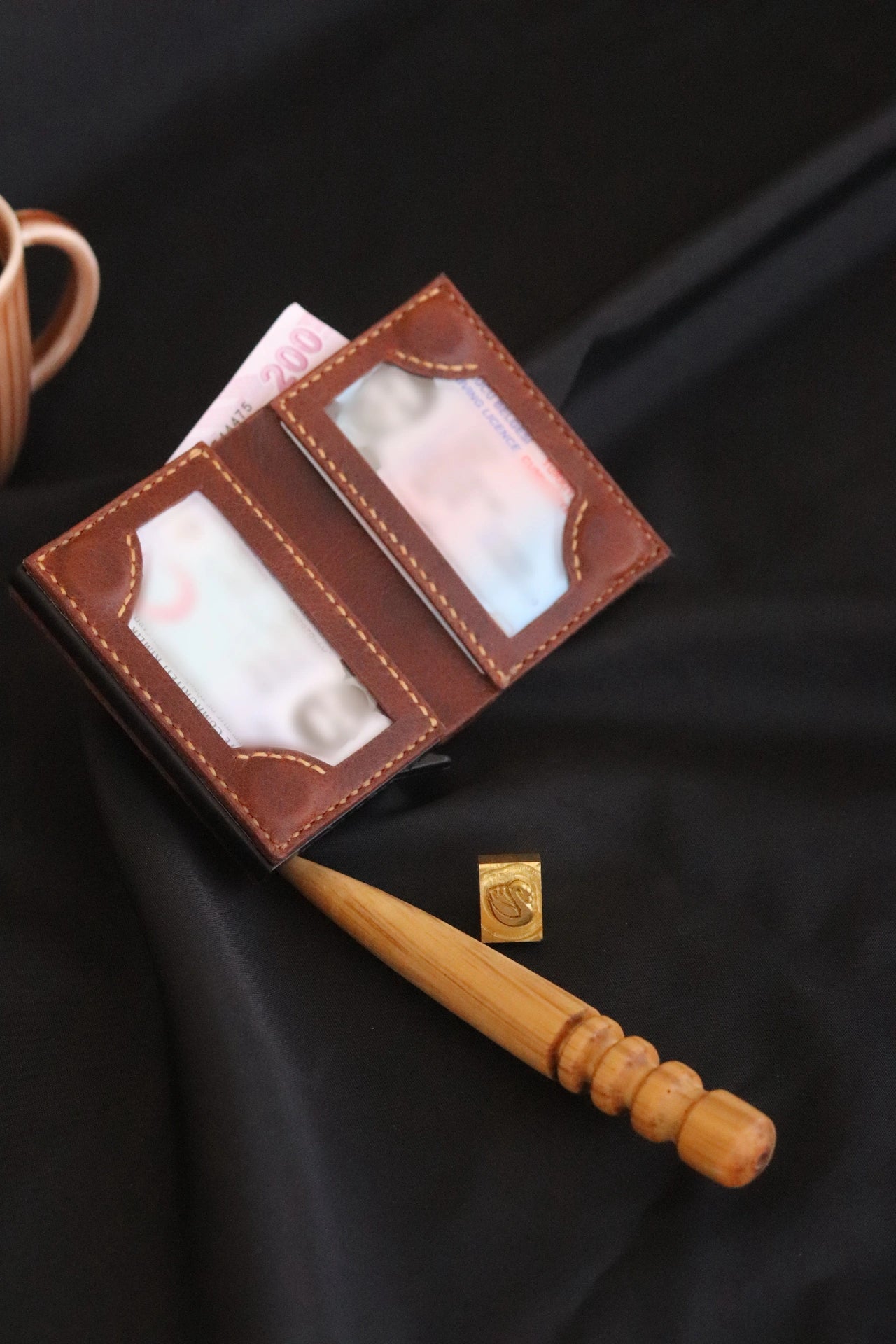 İç kısmında iki adet şeffaf pencere bölmesi bulunan bu model, sık kullandığınız kartlara hızlı erişim imkânı sunar. Dış kısmında ise hem kişiselleştirilmiş isim baskısı hem de zarif bir logo detayı yer alır. El işçiliğiyle özenle hazırlanmış kenar detayları ve sade çizgileriyle zamansız bir görünüm sunar.