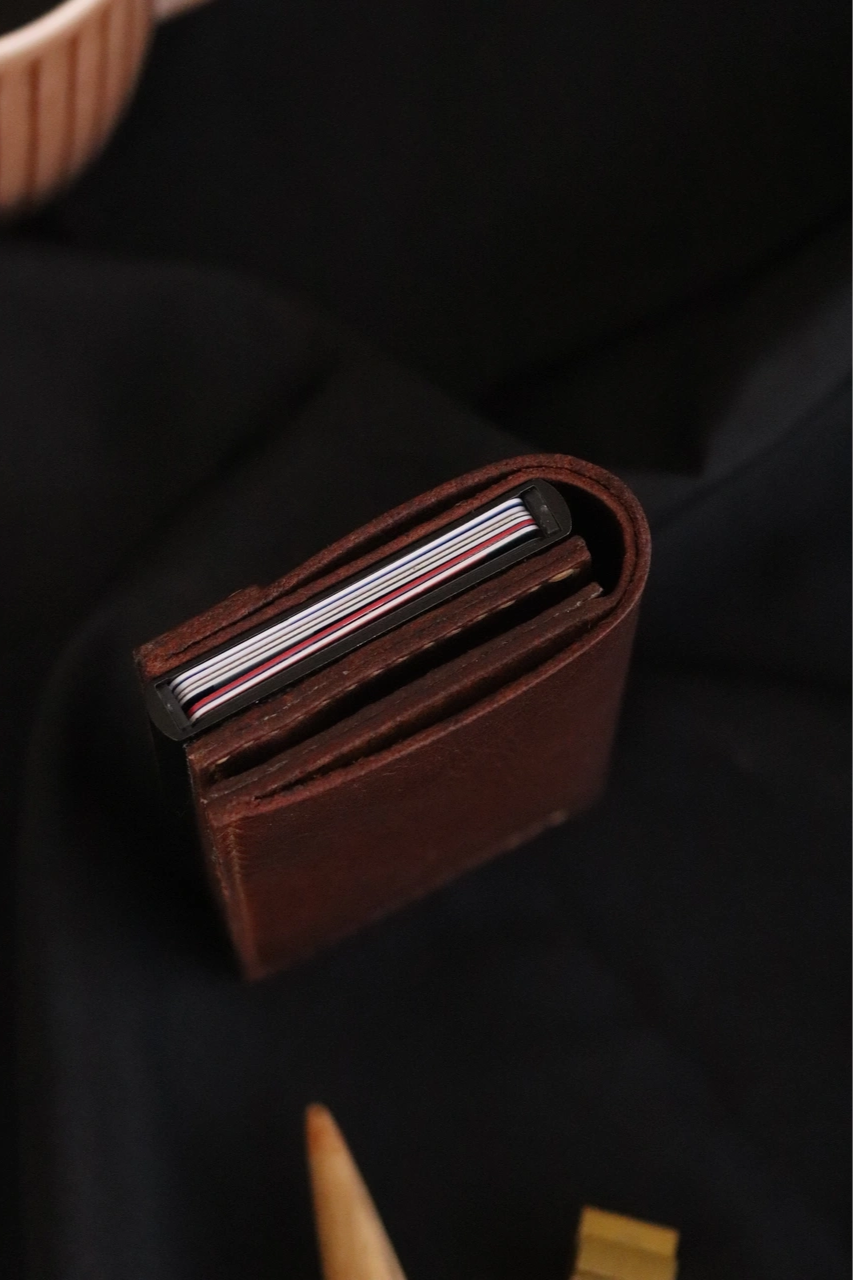Gerçek dana derisinden tamamen el işçiliğiyle üretilen bu kompakt kartlık, gündelik yaşamda ihtiyacınız olan zarafeti ve pratikliği bir araya getirir. Şehir temposuna uyum sağlayan ince formu sayesinde cebe rahatça sığar; minimal yapısı ile stilinize uyum sağlar.