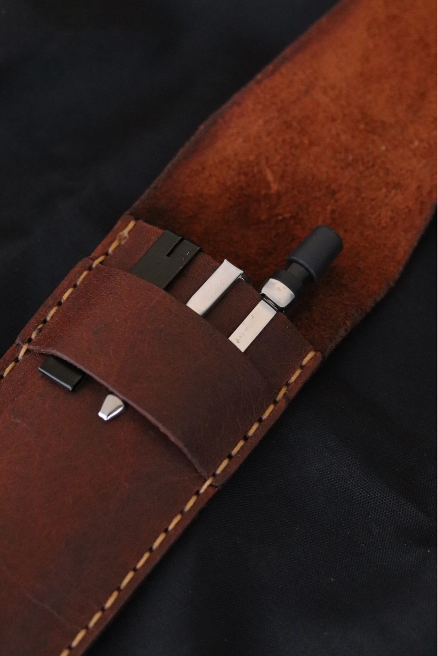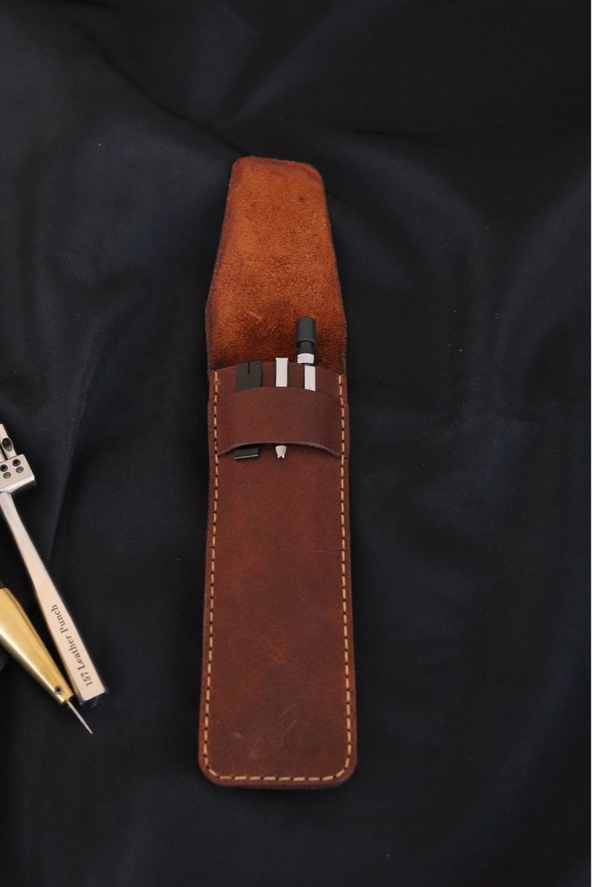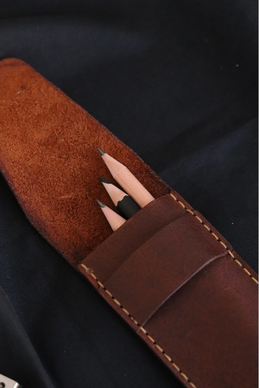 Gerçek dana derisinden tamamen el işçiliğiyle üretilen bu deri kalemlik, yazı deneyiminize hem koruma hem de zarafet katar. Günlük kullanımda, ofiste ya da sanat çalışmalarınızda kalemlerinizi düzenli ve güvenli bir şekilde taşımanızı sağlar.